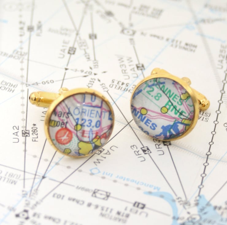 Airplane Cufflinks for Pilot, Aeronautical Charts Personalised Gift For Pilot