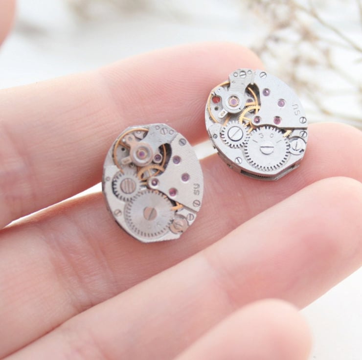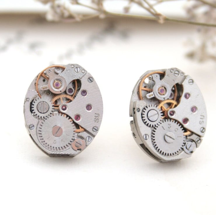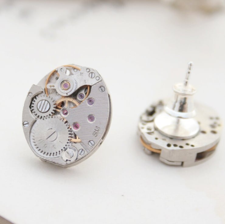 Men’s Stud Earrings Made from Authentic Vintage Watch Movements Geek Chic