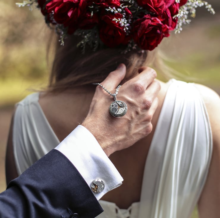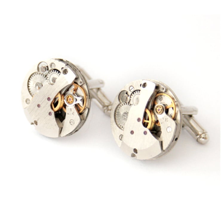 To make them complete, I pieced them together from tiny watchmaker bits. Each movement has a story to tell! These cuff links are not just like watches - they used to be actual watch hearts.
