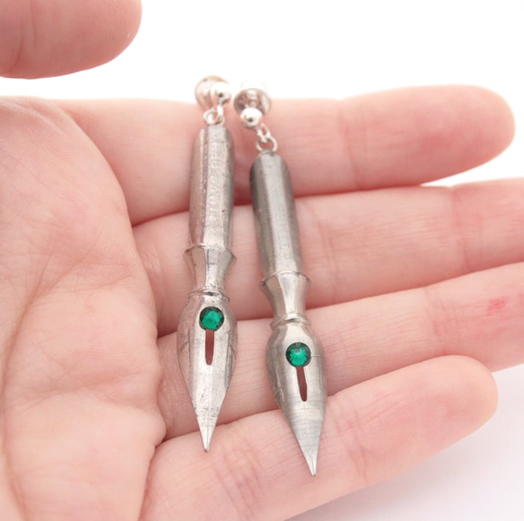 Quirky dangle earrings - unique jewellery made of antique fountain pen nibs.
