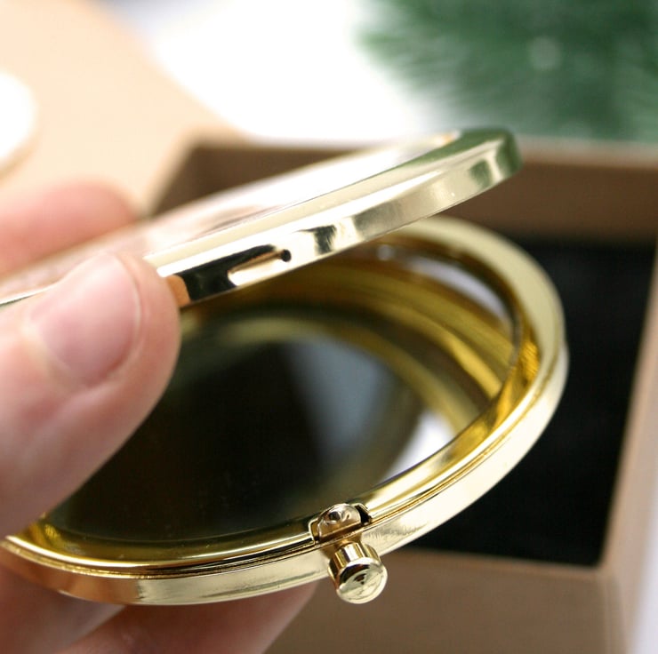 Great quality metal pocket mirror in gold tone.