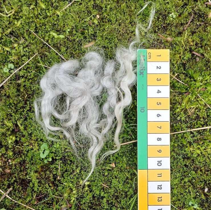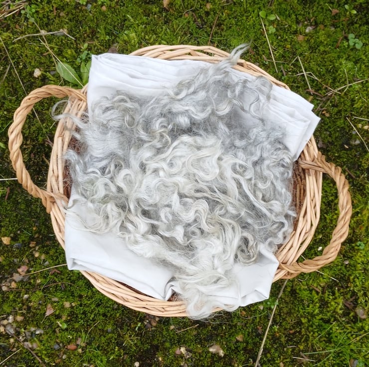 This Gotland fleece is from our own forever flock of sheep which we keep only for their fleece. It is soft curls, this is sorted into silver grey and is suitable for spinning, needle felting or wet felting.