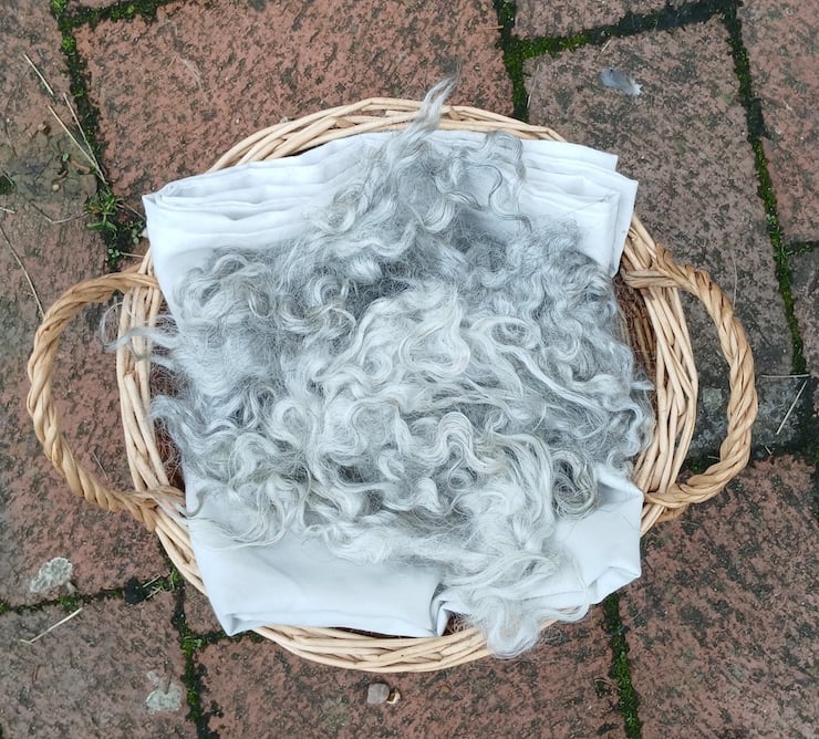 This fleece is from our Autumn shear, it is hand washed. The natural fleece comes in many shades of grey and the locks are in soft curls approximately 9cm in length.