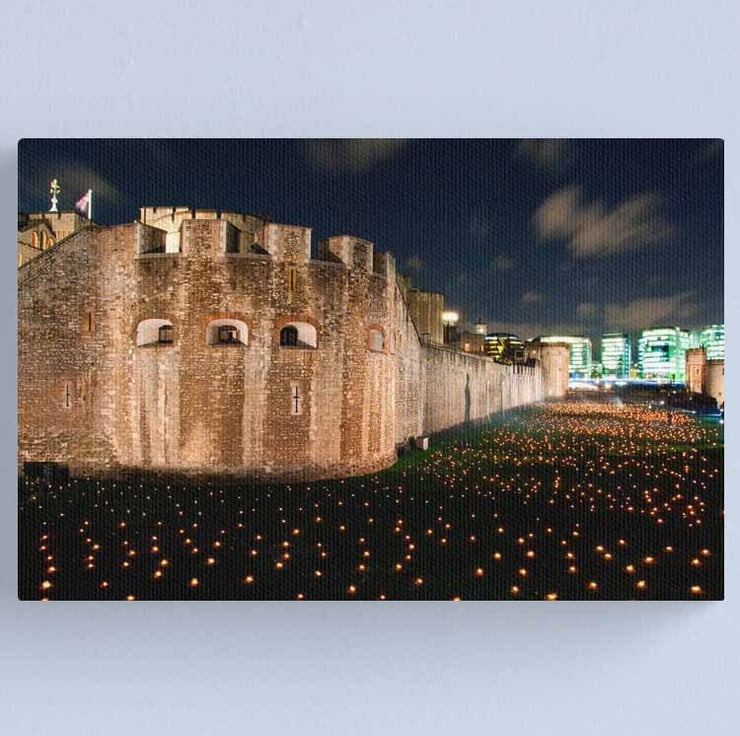 Tower of London Beyond The Deepening Shadow 10000 flames torch lit candles lanterns light up the moat to commemorate the centenary of the end of the First World War Armistice tribute in England United Kingdom a photographic print photography by Andy Evans Photos