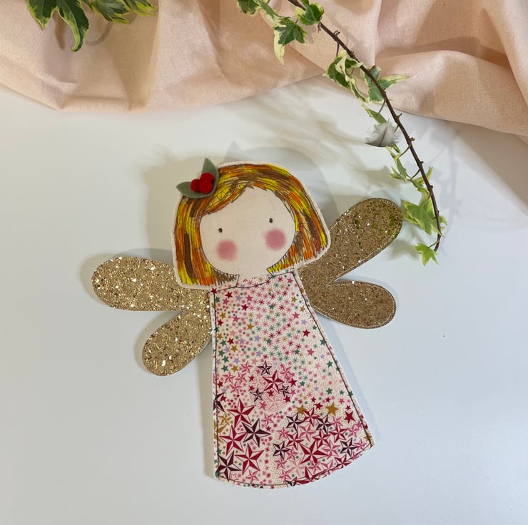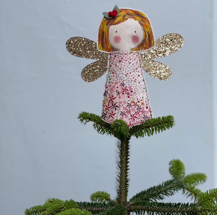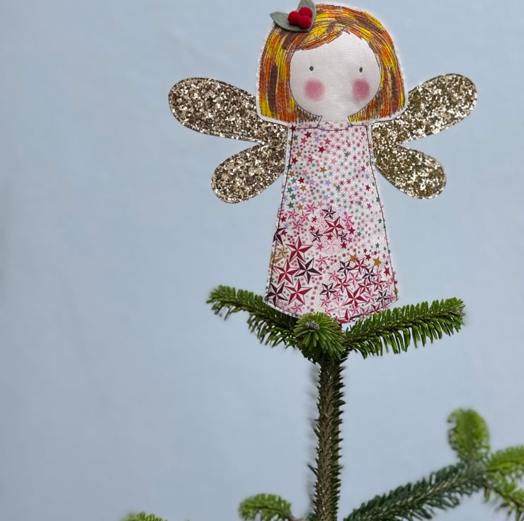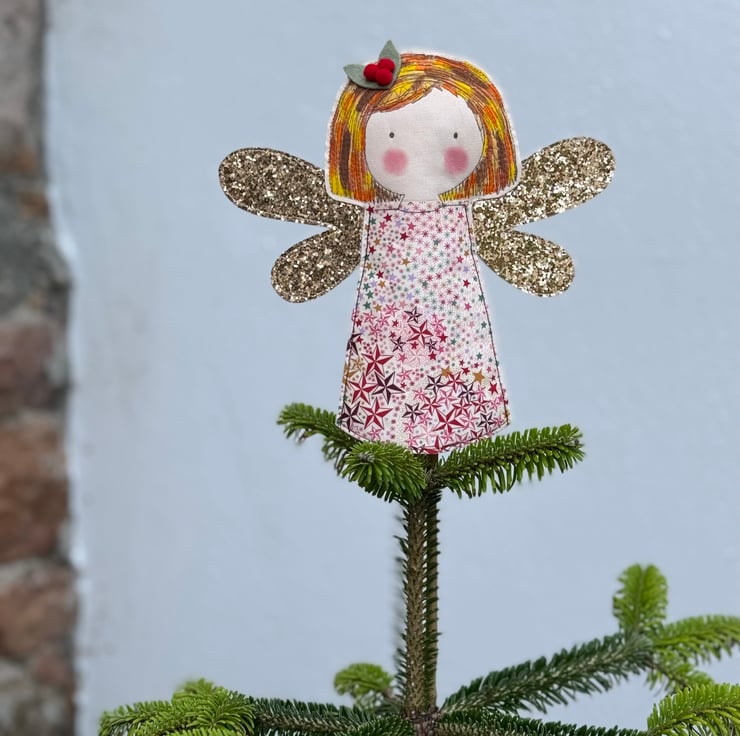 Using free motion embroidery, I have stitched a sweet tree top fairy in pretty Liberty fabric. You can also choose the skin tone of your fairy at checkout.