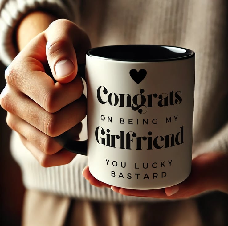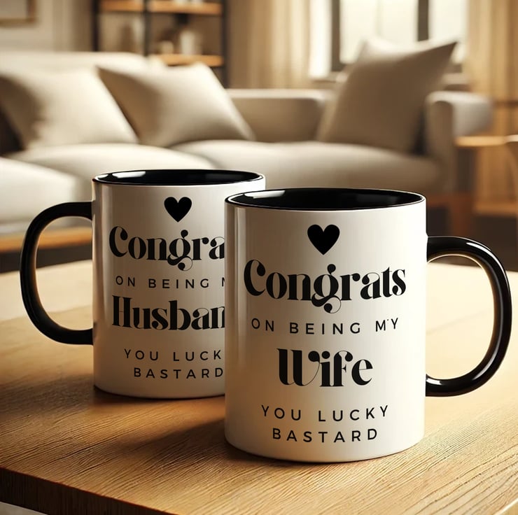 Celebrate your relationship with a touch of sarcasm with this "Congrats on Being My" mug collection! Perfect for your boyfriend, girlfriend, husband, or wife, these mugs offer a playful twist on affection, letting them know they’re "lucky" to have you. With the message, "Congrats on being my (partner role) – You Lucky Bastard," these mugs add humour to your morning coffee or evening tea ritual.