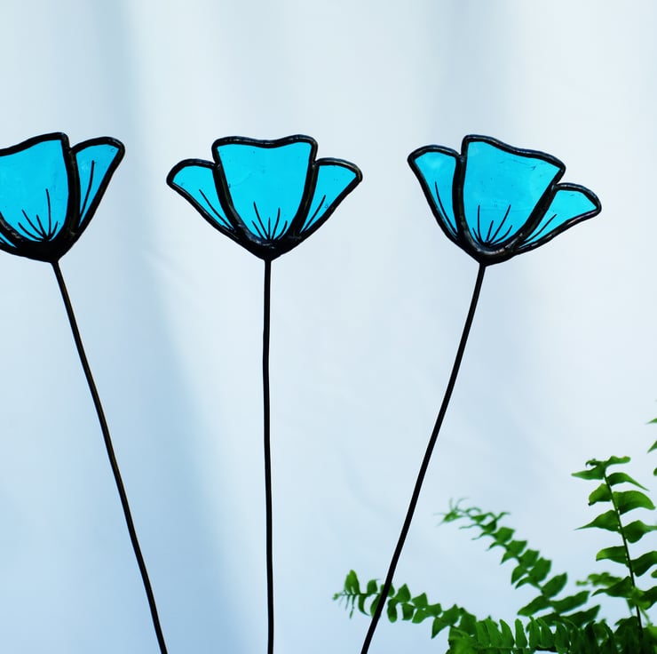 Stained Glass Turquoise Poppy, Handmade Wild Flowers.