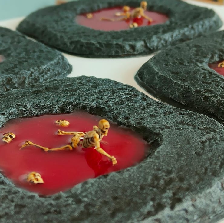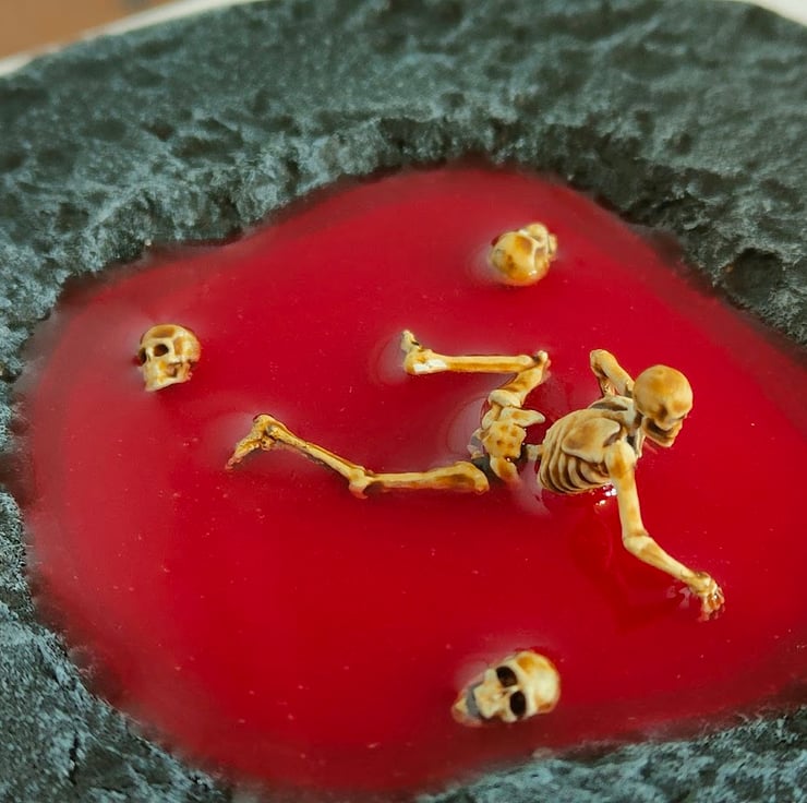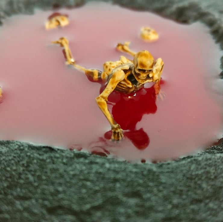 Blood pool with skeleton and skulls (price is for 1 pool) I do have 4 in total but I list on other sites so let me know if you'd like more than one.