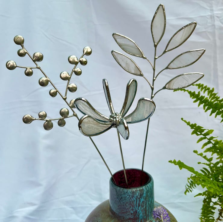 Stained Glass Flower - Handmade 3D Honeysuckle - Silver Finish