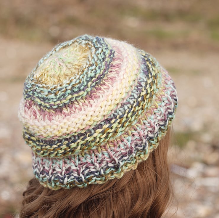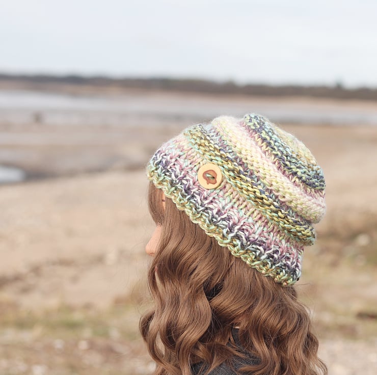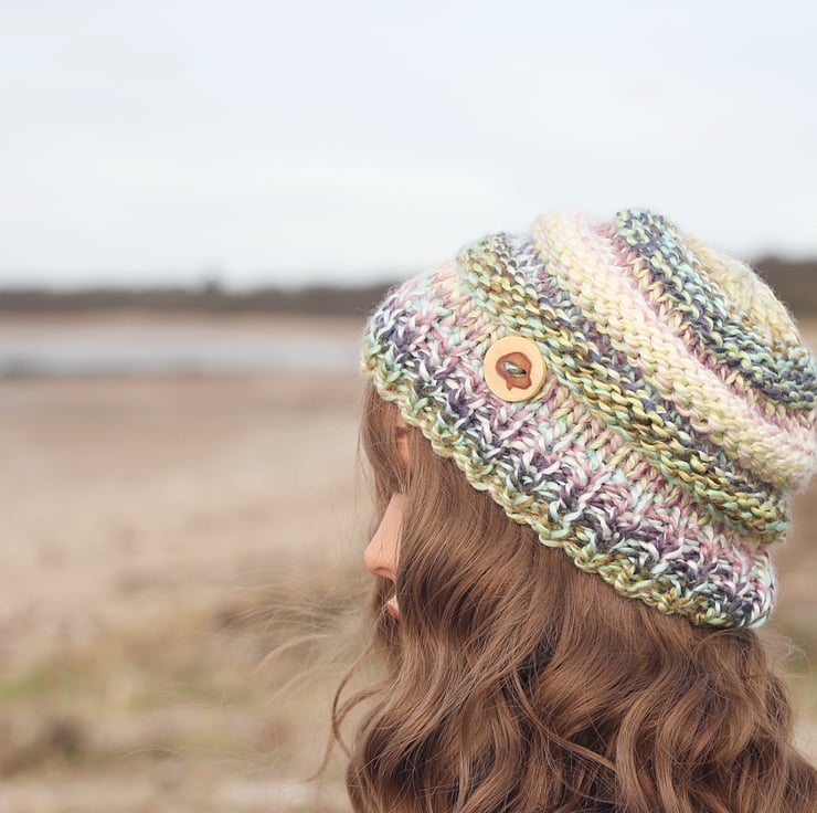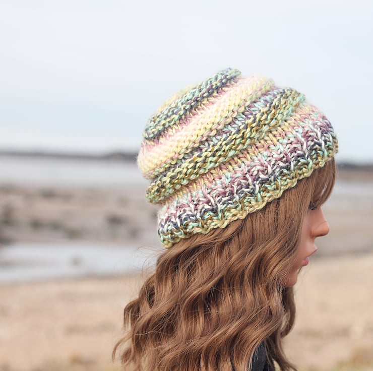 Knitted beanie hat, super chunky cap winter light multicolour, women's gift, UK