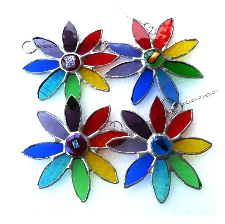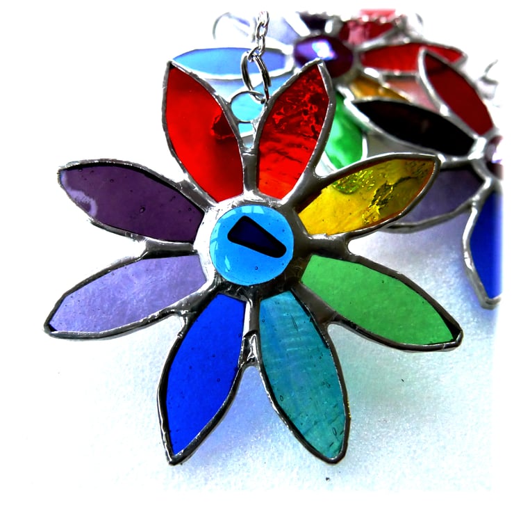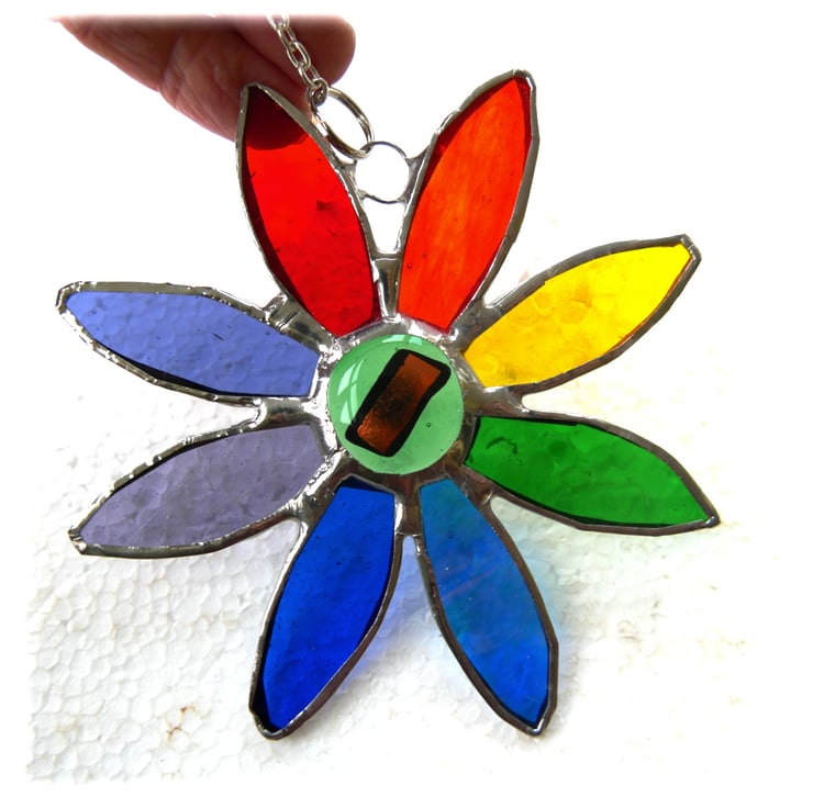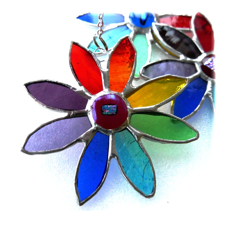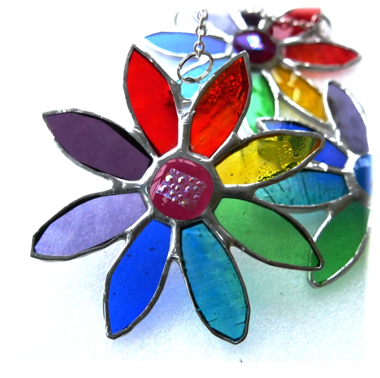 Rainbow Daisy Suncatcher Stained Glass Flower Dichroic Nugget
