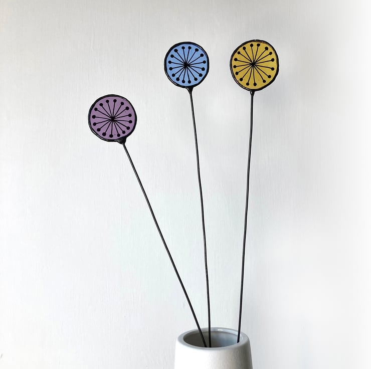 Stained Glass Dandelion Clock, Everlasting Handmade Wild Flower - Purple