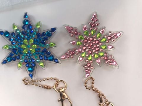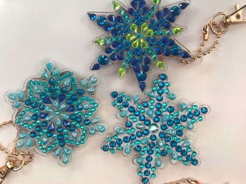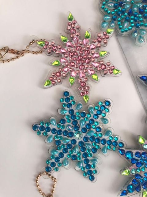 Six Christmas tree decorations worked on acrylic support on both sides with a keychain.