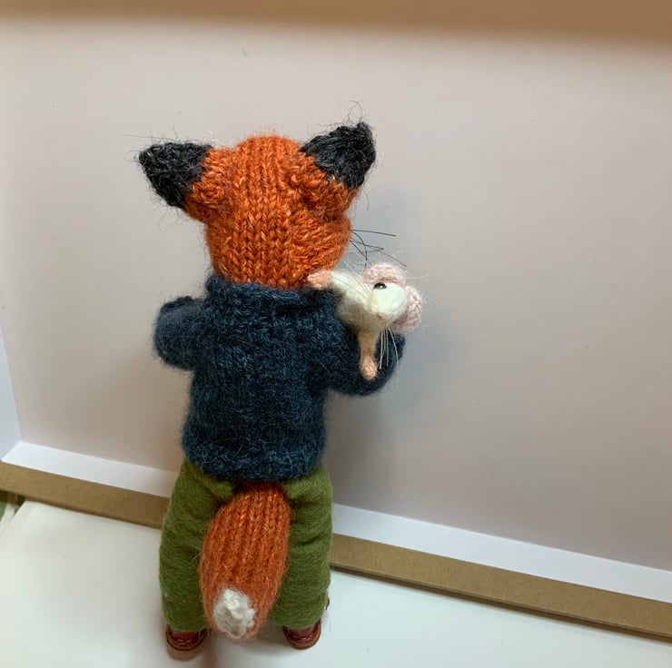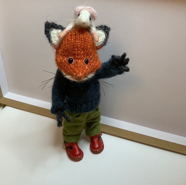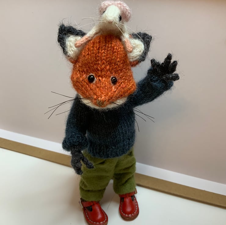 Hand Knitted Fox Doll with pet Mouse - Dot Pebbles Pattern