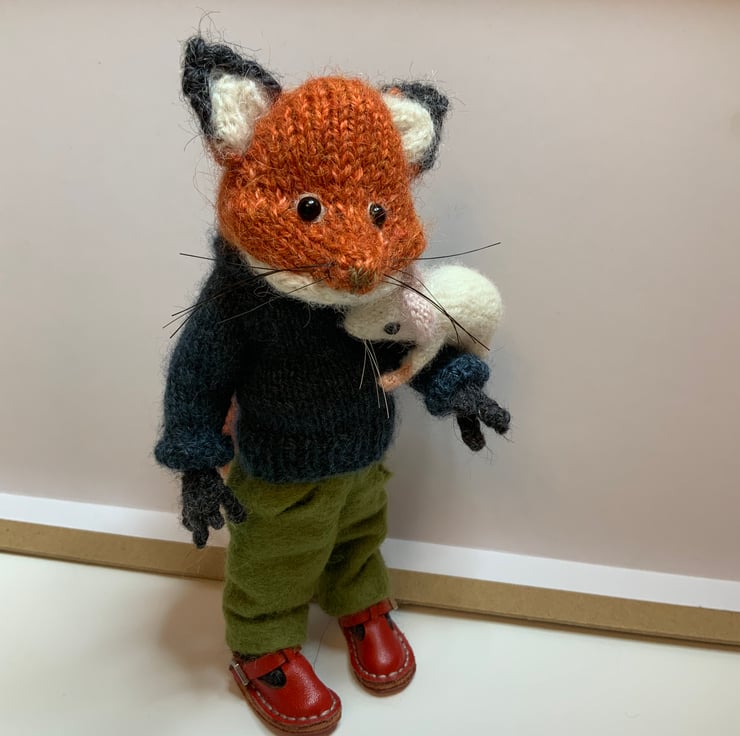 Using the original Dot Pebbles pattern, this Fox Doll has been hand knitted by myself using a mixture of Merino and Alpaca yarns.