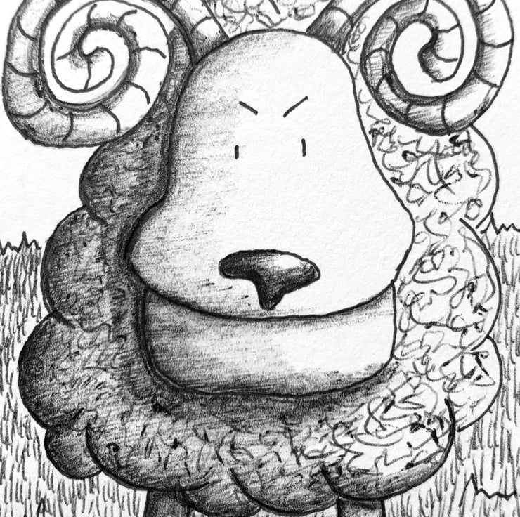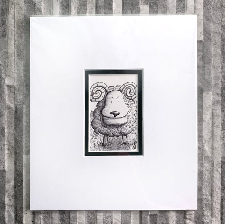 Mini cute sheep pen and ink illustration Double mounted and ready to frame. (No. 07)