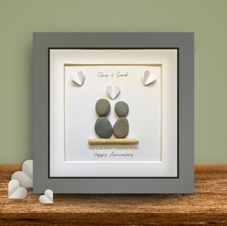 This fun one year Wedding Anniversary Pebble Art Picture is designed to celebrate the traditional paper anniversary gift for the 1st year of being married.