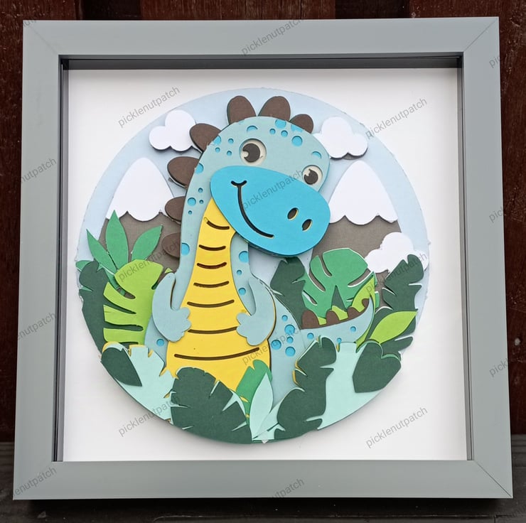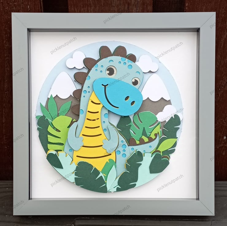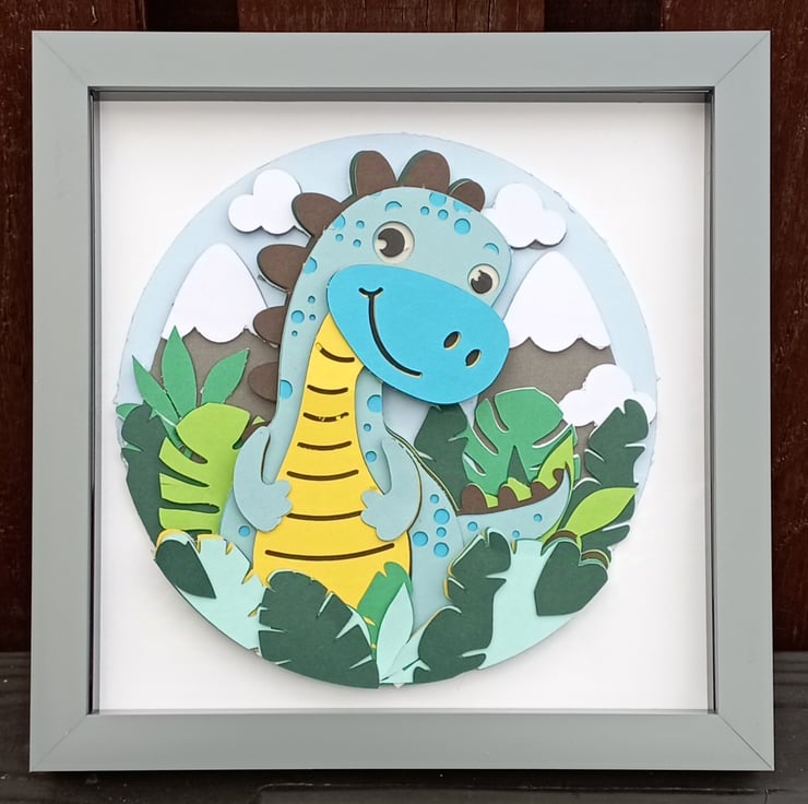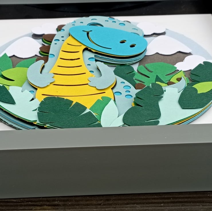 CUTE DINOSAUR layered 3d dinosaur in a frame measures 20 cm by 20cm