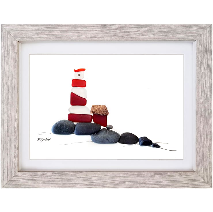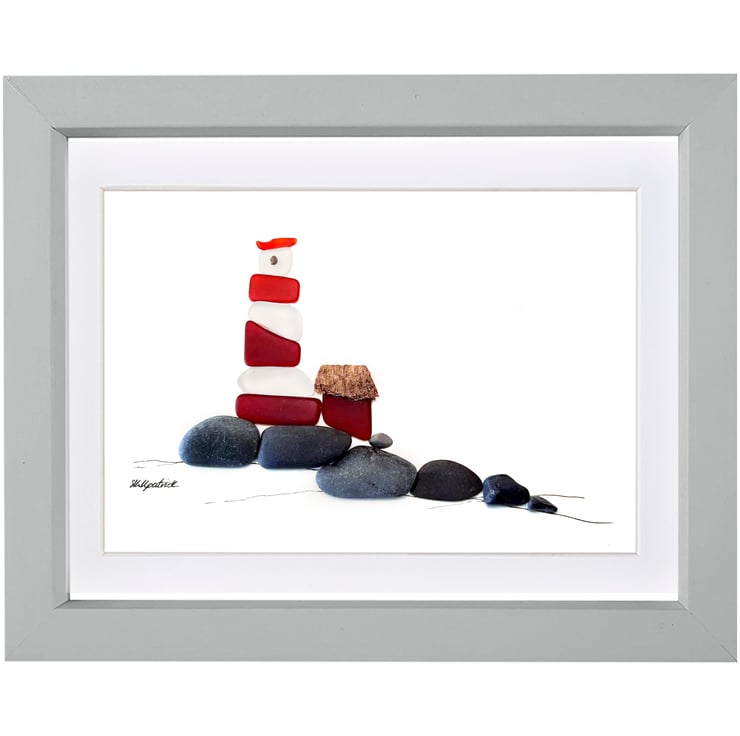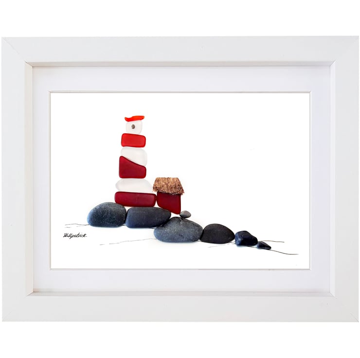 Red & White Lighthouse is a unique sea glass and pebble creation by Sophie Kirkpatrick.