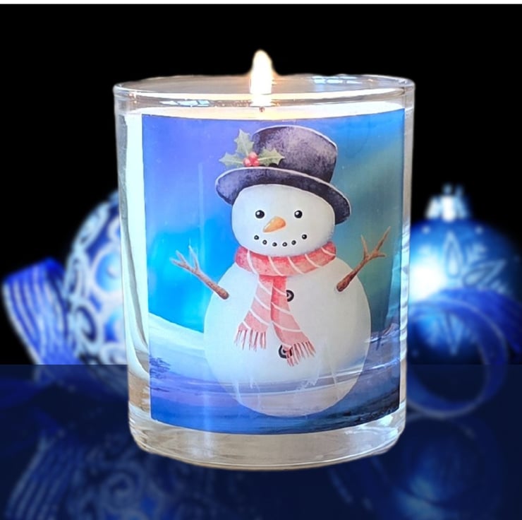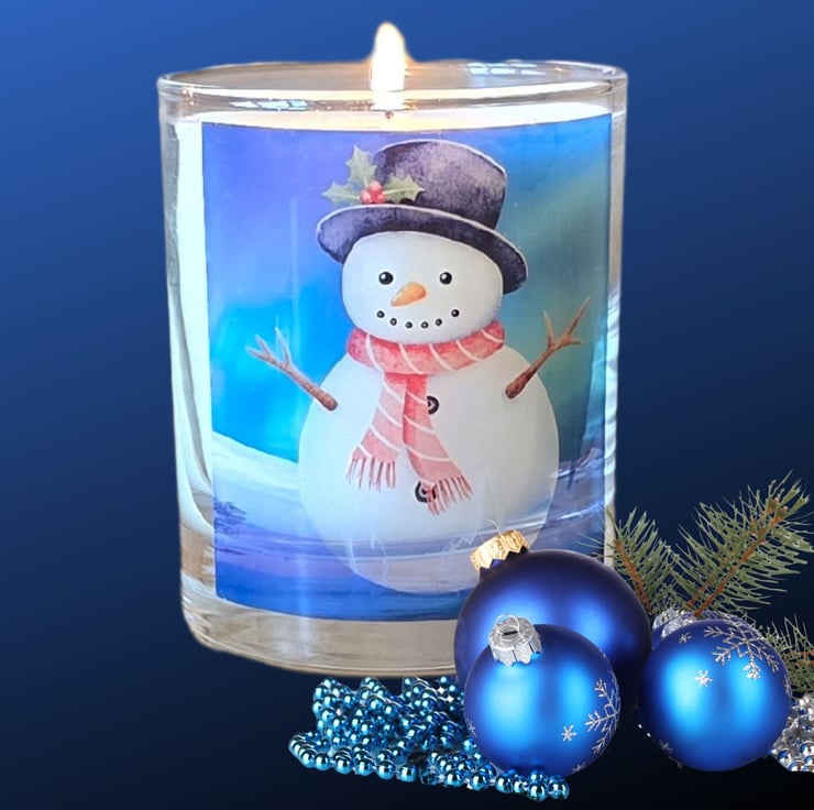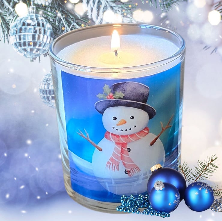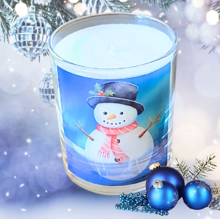 A seasonal scented candle with a Snowman design. Available in 6 festive fragrances to add the aroma of Christmas to your home. Handmade in Northamptonshire using a high quality rapeseed and coconut wax blend, the finest range of fragrances, poured into quality glass containers and supplied in a kraft box.
