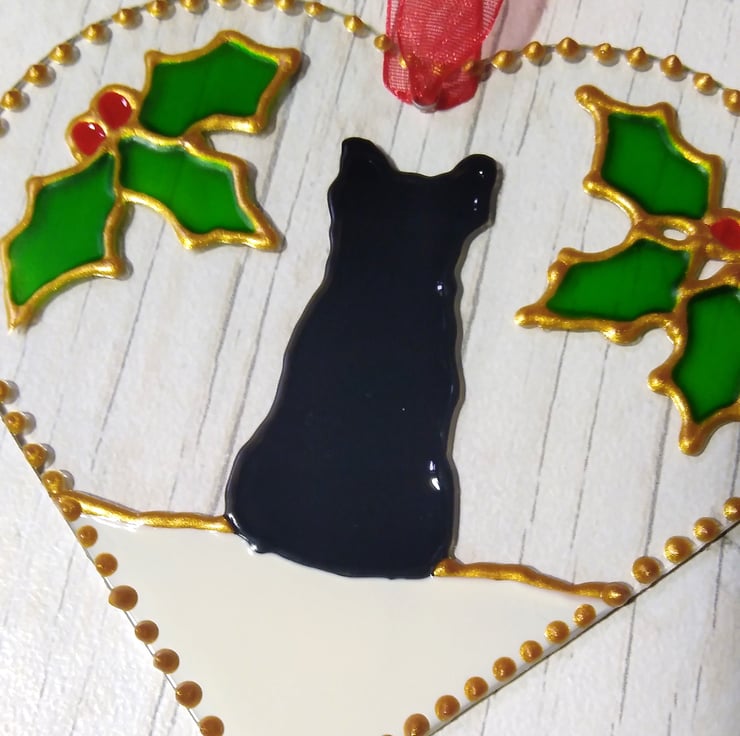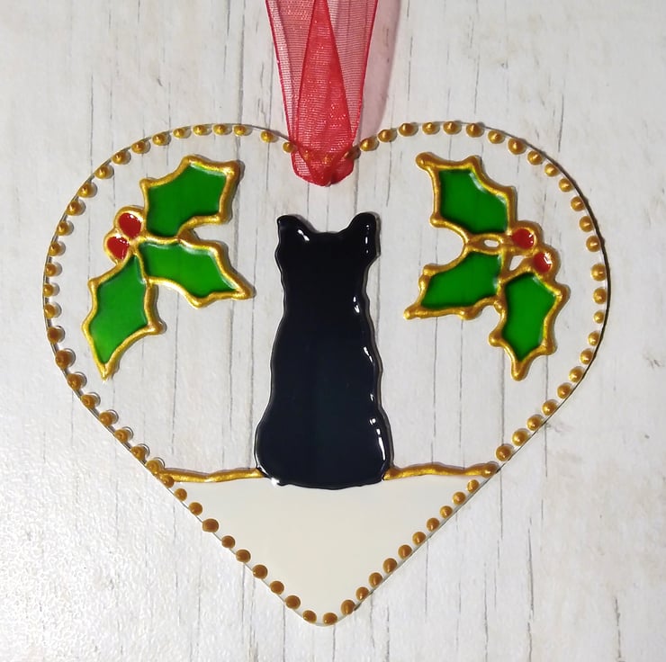 This is a 10cm x 9cm glass heart. A lovely French Bulldog decoration. The dog is black. Finished with an organza ribbon for hanging. A beautiful addition to any tree or window this Christmas. These decorations make a lovely gift.