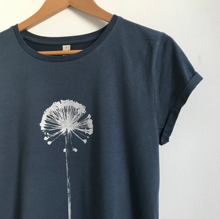 Our popular best selling Allium design printed on new style organic cotton ethical tees