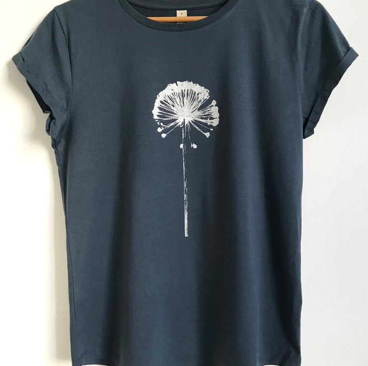 Our popular best selling Allium design printed on new style organic cotton ethical tees