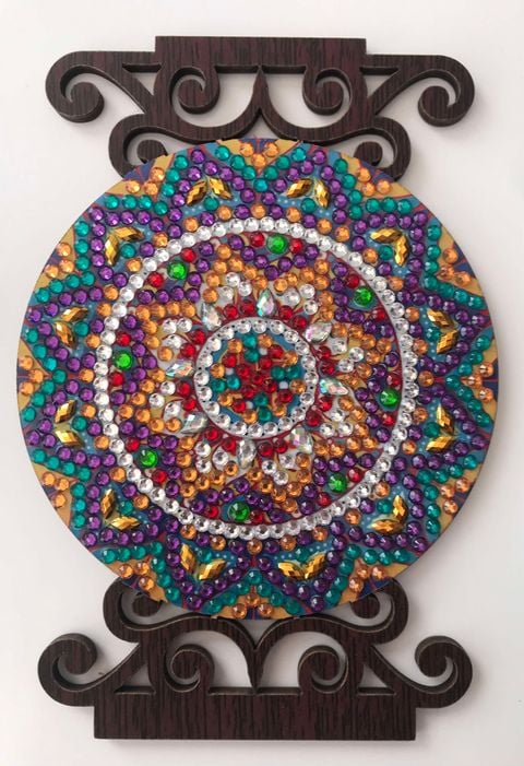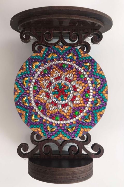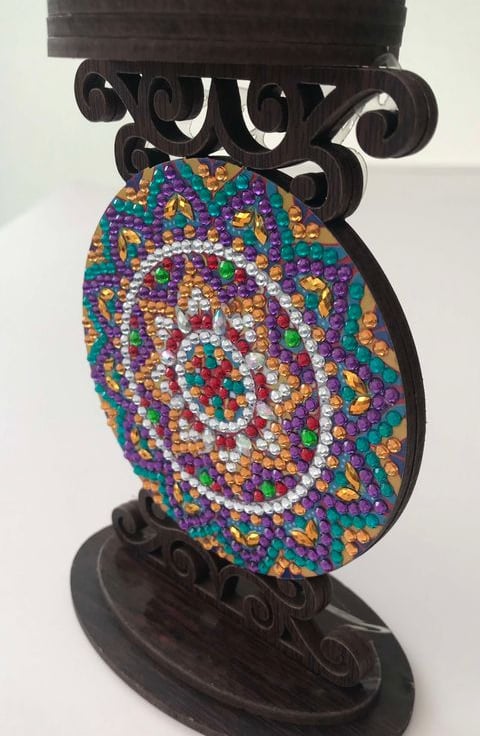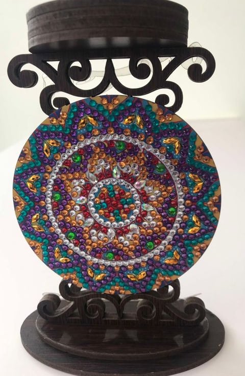 I placed the sparkling beads manually. I worked on this amazing Mandala Wooden Candle Holder for about one hour.