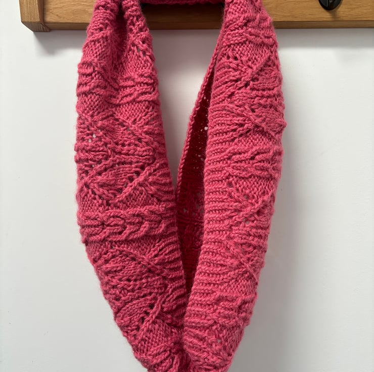 Finished size: Cowl circumference 100cm/40 in. Depth 24cm/9.5 in