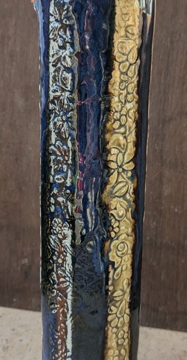 A hand made, stoneware vase, inspired by Hungarian Folk art.