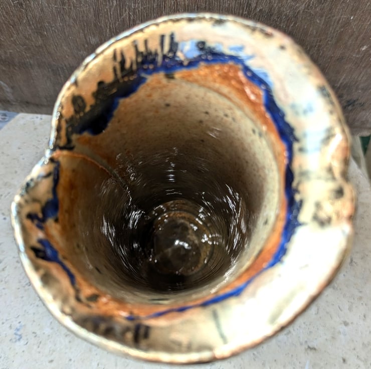 Speckled dark beige glossy glaze in side.
