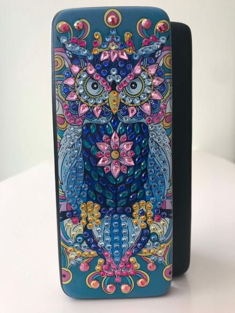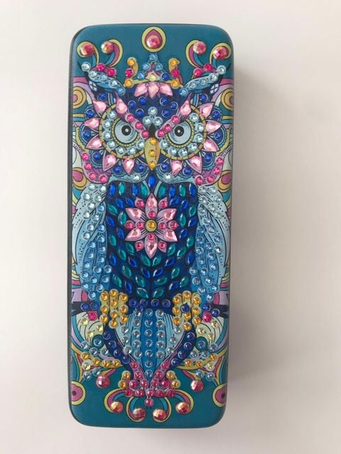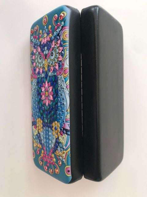 Diamond Art Owl design. Eyeglasses Storage Box – Handmade by KRMN’s Art and Crafts.