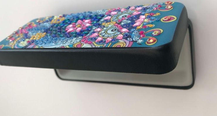 The sparkling beads are placed on black synthetic leather, by myself, manually. I worked on this Diamond Art Glasses Case for about one hour. The inside is made of a texture that keeps the glasses safe.