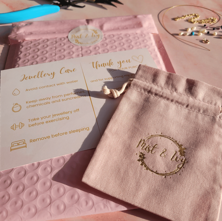 Your bracelet will come packaged in an eco friendly rose coloured cotton pouch. Storing your jewellery in it's pouch, and avoiding it coming into contact with moisture and lotions, will protect your jewellery and help it to retain its shine.