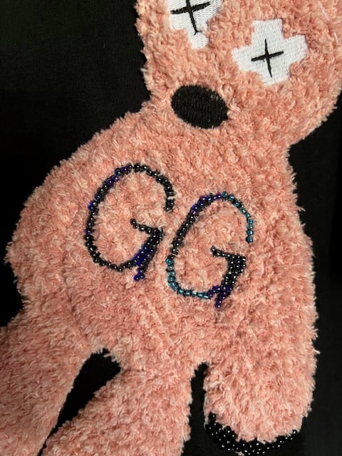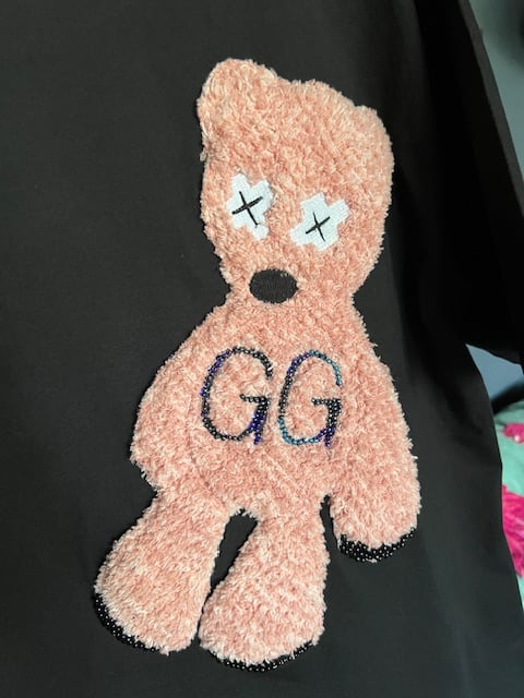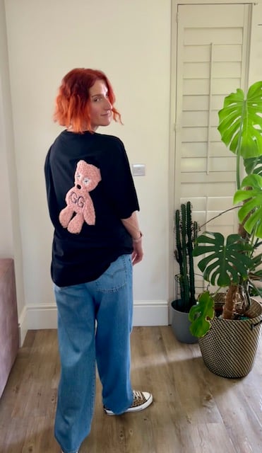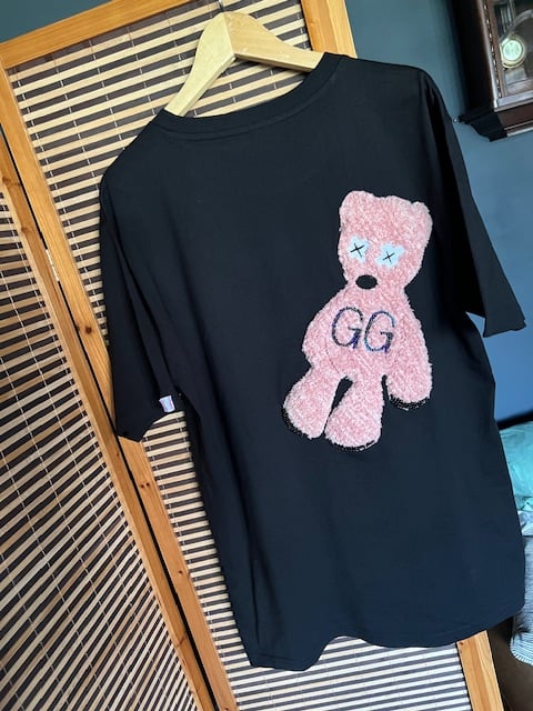 Our Oversized Tee's are made from soft, thick Polyester Cotton. These beautiful T-shirts are all individual - each one is limited edition. This gorgeous tee features the pink GG Bear which is finished with hand beading. Create the perfect 90's feel with our joggers or add your favourite baggy jeans and trainers for a casual Sunday look.