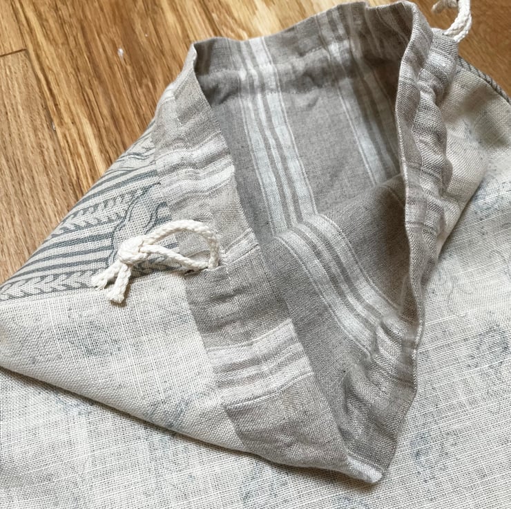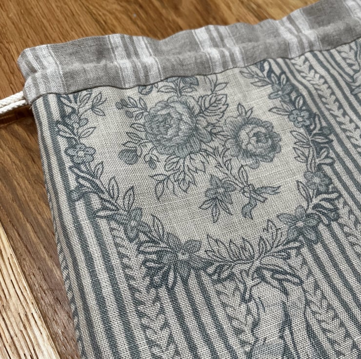 Perfect for storing all sorts of things. Could be used as a small project bag or a gift bag which can be reused, or just to hang on a peg and look pretty.
