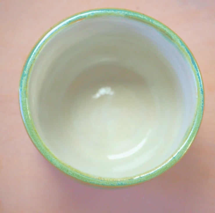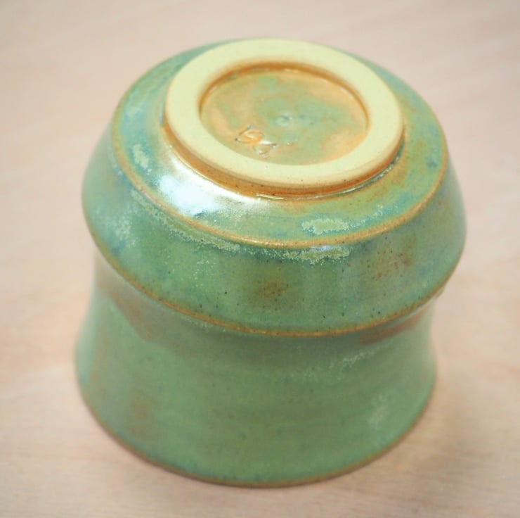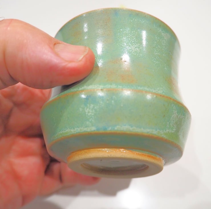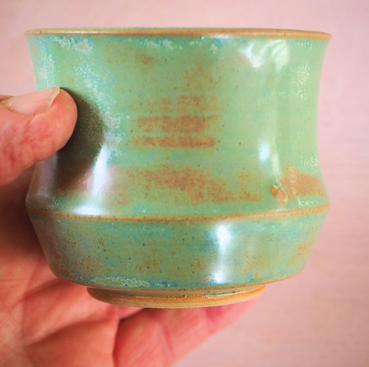 Tea bowl or whisky/spirit cup. Hand thrown stoneware on my potters wheel and glazed in translucent turquoise, teal green outside and a white glaze inside.