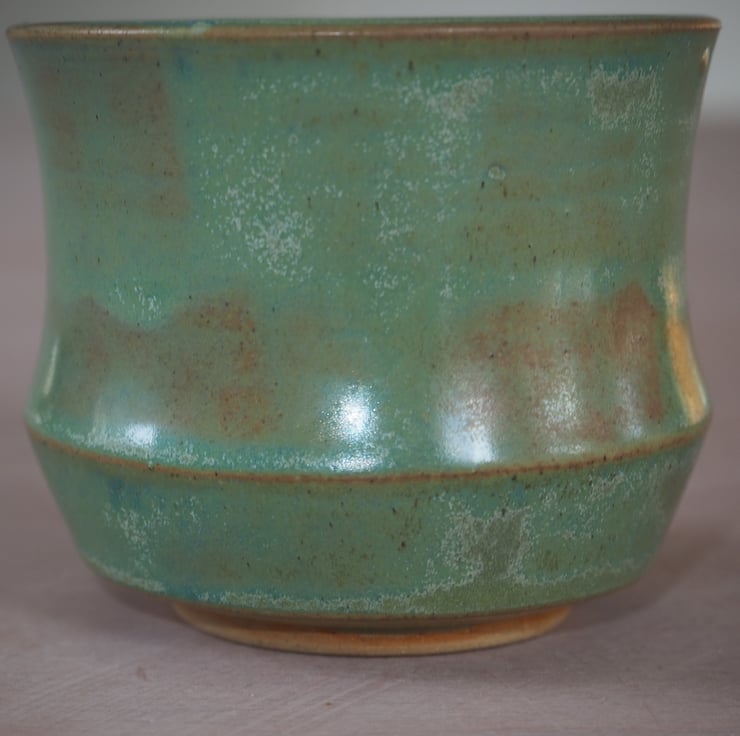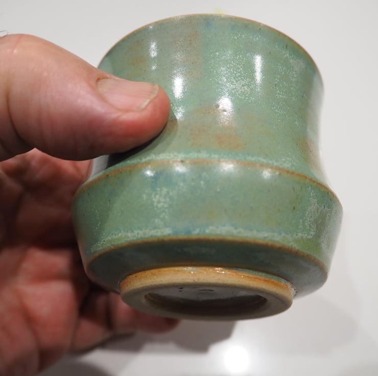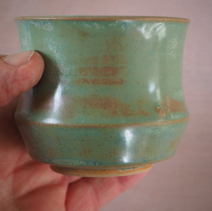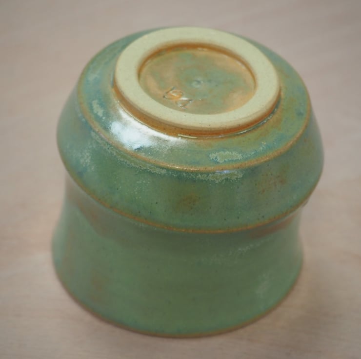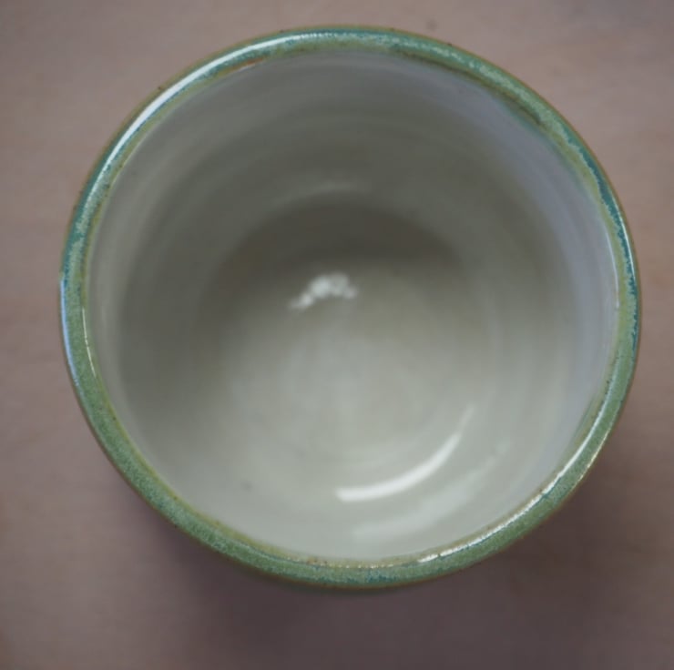 Tea bowl or whisky/spirit cup. Hand thrown stoneware on my potters wheel and glazed in translucent turquoise, teal green, brown outside and a white glaze inside.