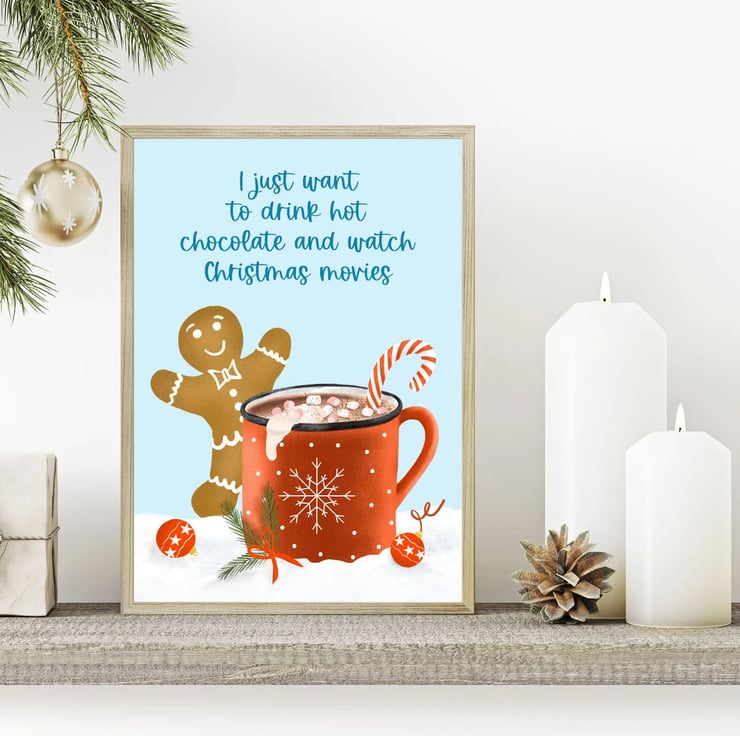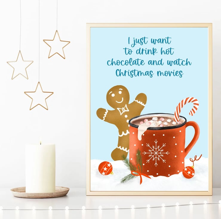 I just want to drink hot chocolate and watch Christmas movies, do you? This lovely art print is sure to bring that cosy warm feeling of Christmas magic to your home.
