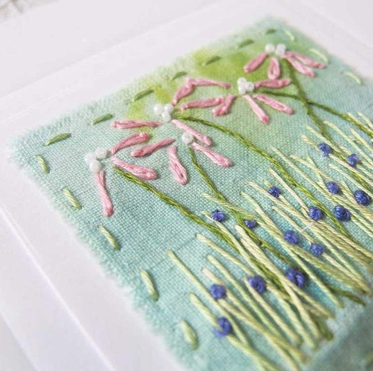 Inspiration for my embroideries often comes from my garden and my daily walks in the beautiful New Forest. I sketch and take photos and these are used as a basis for my inked fabric backgrounds and embroidery designs.