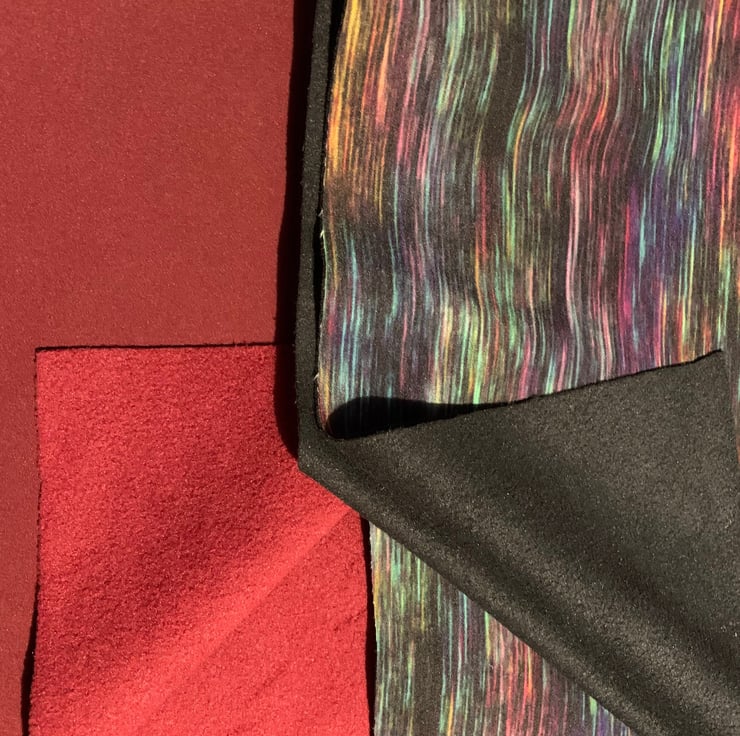Printed design on a woven fabric 'soft shell' which is backed with a lovely warm fleece. Soft shell is manufactured with a woven showerproof front and fleece fabric backing.