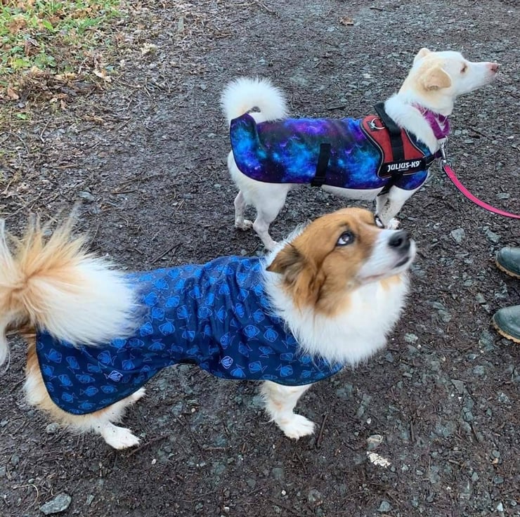 Sadly both my pups have long fur but the showerproof and waterproofs are great for them.
