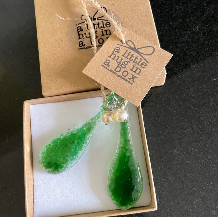 A beautiful fused mistletoe decoration with pearl embellishments will look beautiful on your Christmas tree or a lovely gift for a teacher, relative or friend.