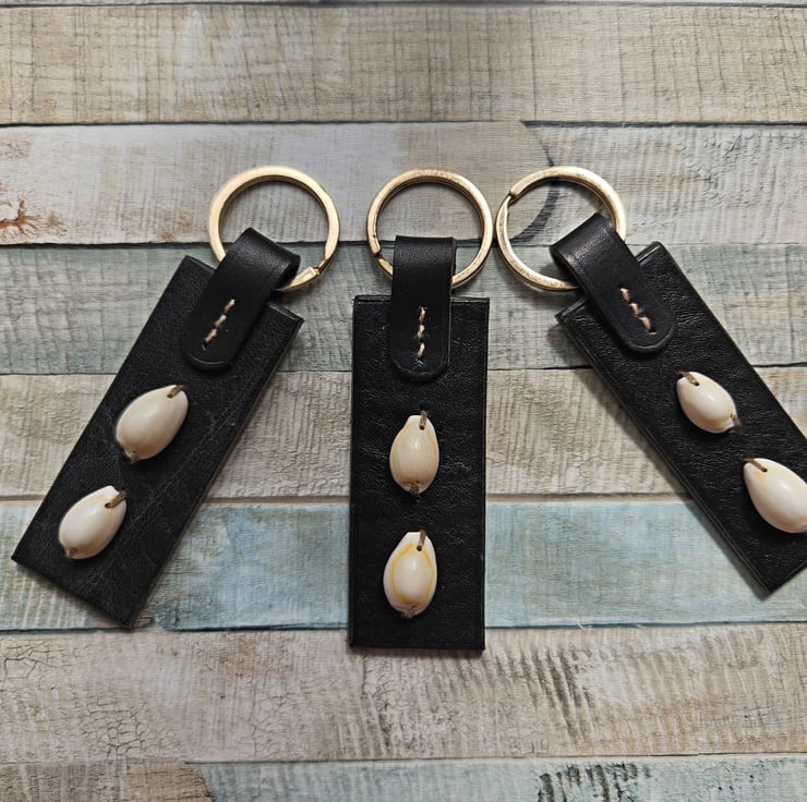 The Cowrie shells are natural except for the holes I had to drill for the stitching!