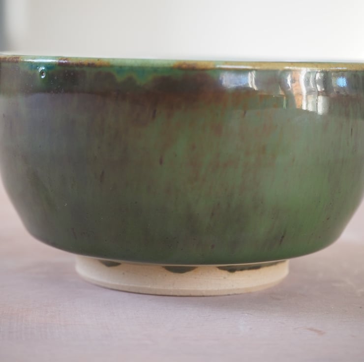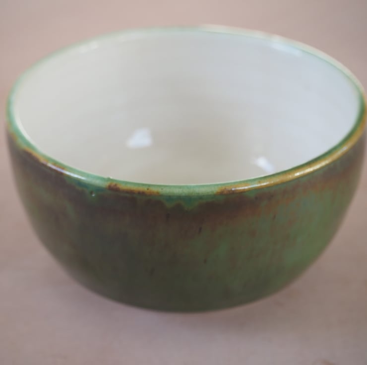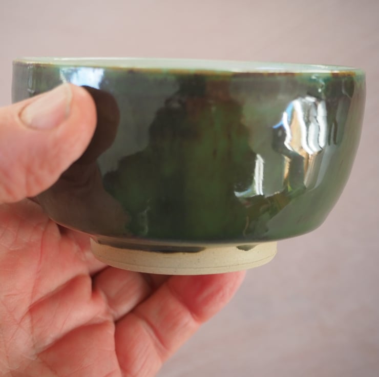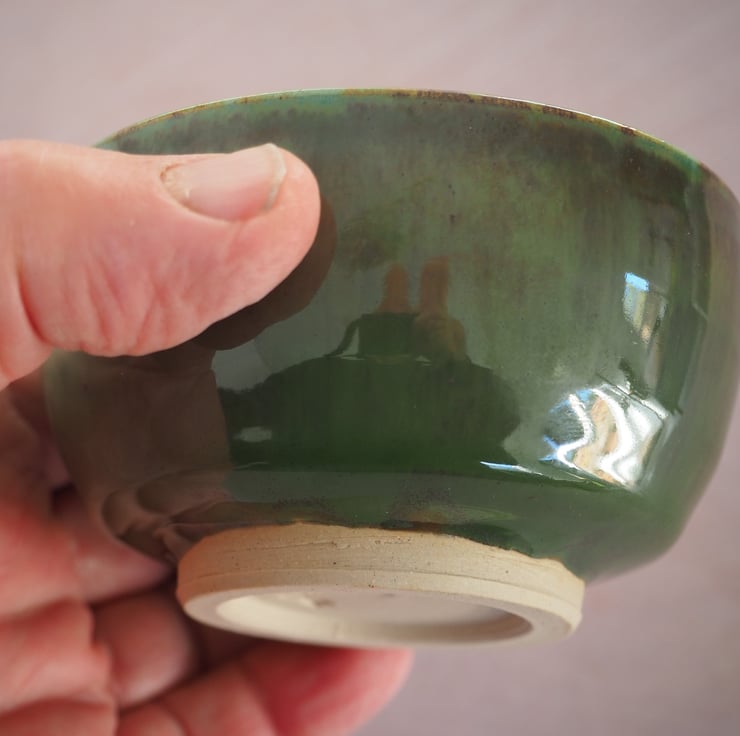 Tea bowl or also good for rice, sugar, sweeties etc. Hand thrown stoneware on my potters wheel and glazed in a dark green outside and a white glaze inside.