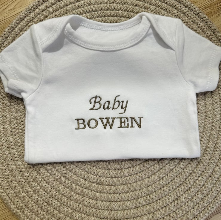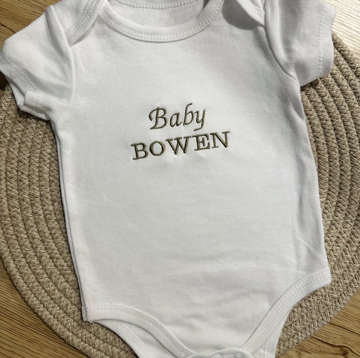 Personalised Baby Grow, the perfect gift for a new arrival! Customised with their name, this soft and classic baby grow is a must-have for any baby's wardrobe. Handcrafted with love, it's ideal for expecting parents, baby announcements or baby showers.