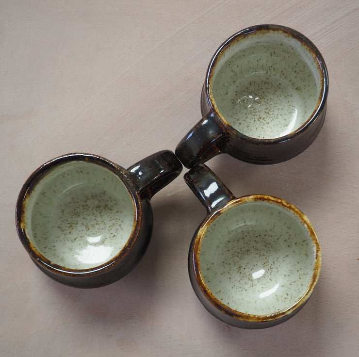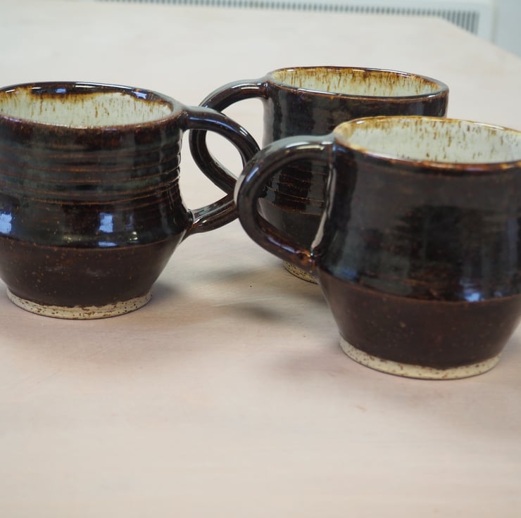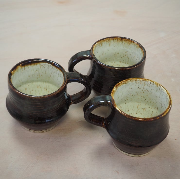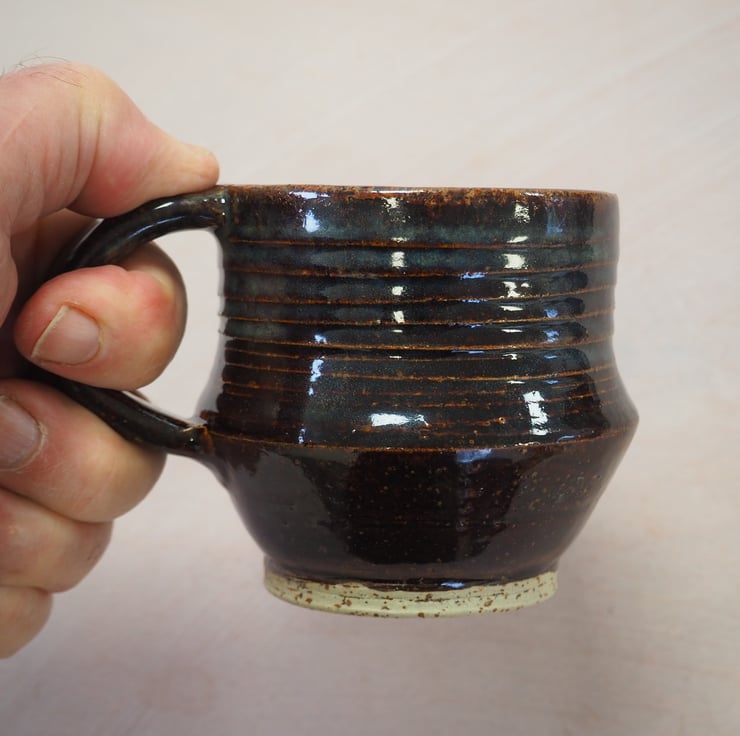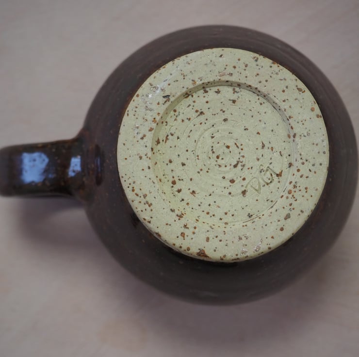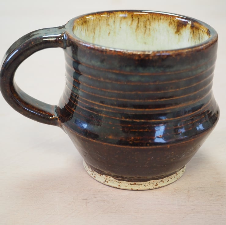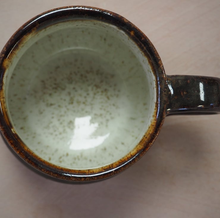 Coffee, tea or perfect for hot chocolate mug. Hand thrown with speckled stoneware clay on my potters wheel and glazed in rich chocolate brown outside and a white glaze inside which highlights the speckled clay.