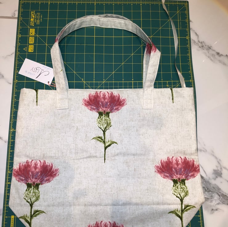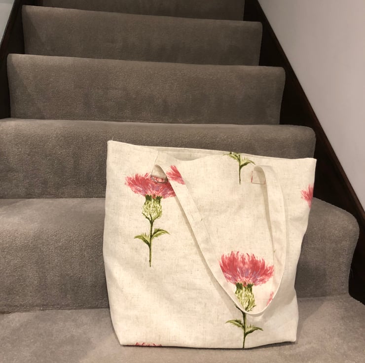 The bag is made with a curtain canvas fabric printed Thistle rosso - Ivory pink .