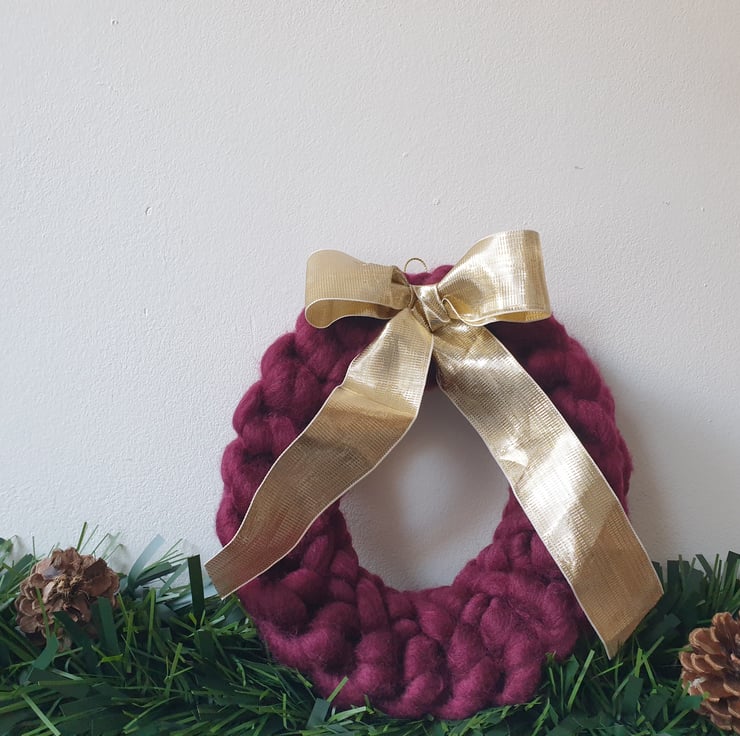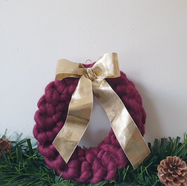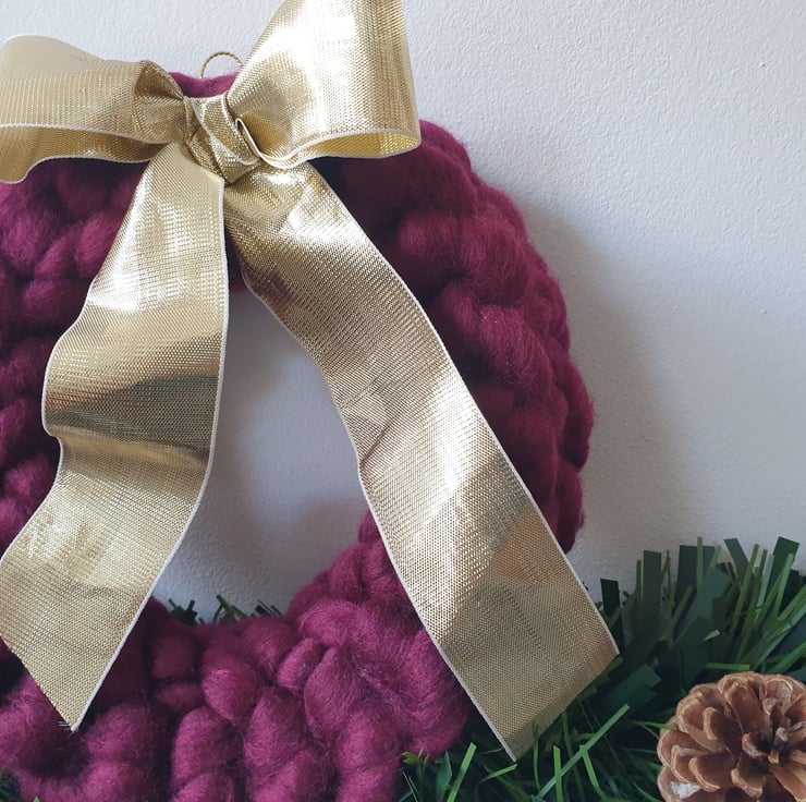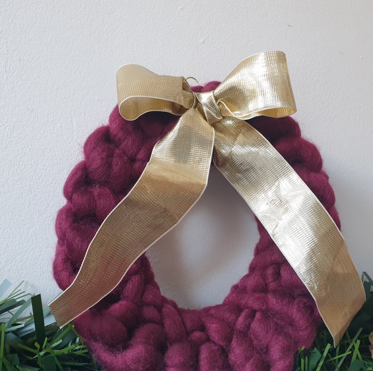 Lovingly hand-knitted with chunky extra soft fine top quality merino wool, this Christmas wreath was created with the festive season in mind to lavishly style up any home this winter.