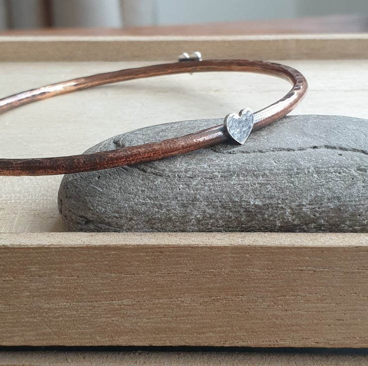 The copper heart bangle would make a great gift for anyone who loves rustic boho jewellery or a lovely 7th anniversary gift. The same style of bangle is also available in sterling silver with copper hearts as shown in the second and third to last photos. It can be found in the bracelet section of my shop.
